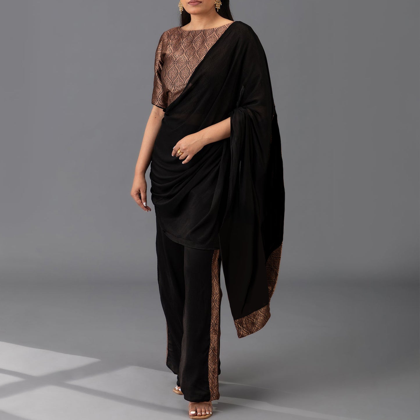Saree-Style Palazzo Co-ord Set - Black
