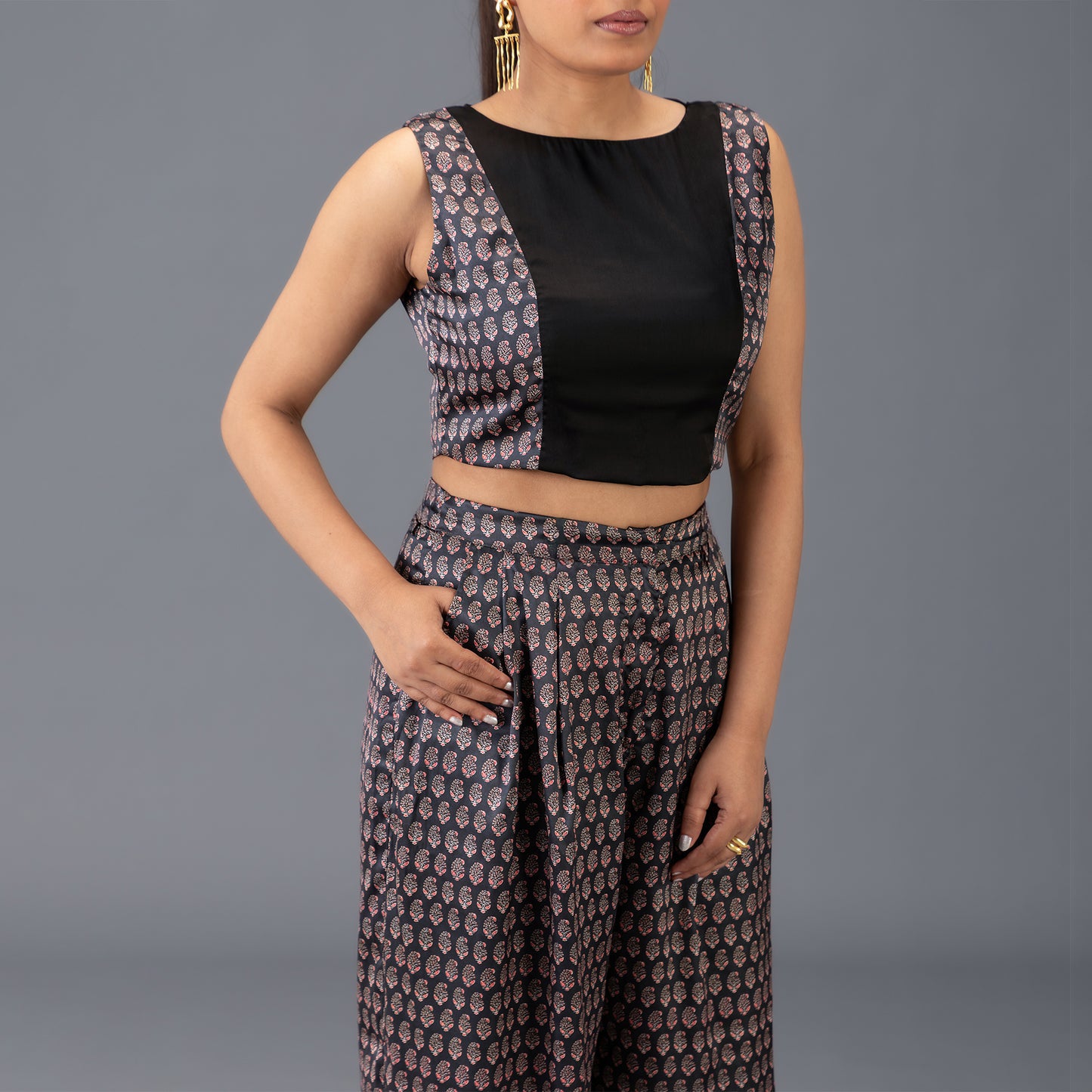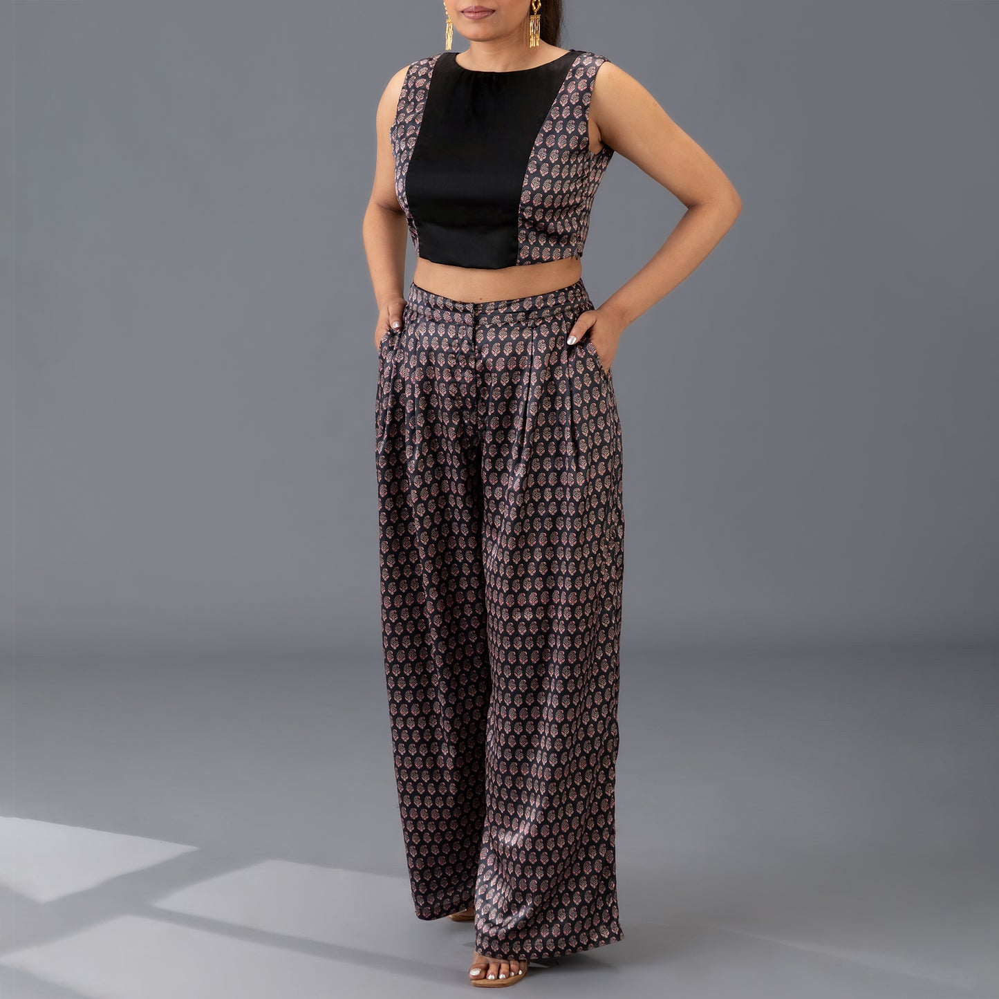 Paneled Crop Top & Pleated Palazzo