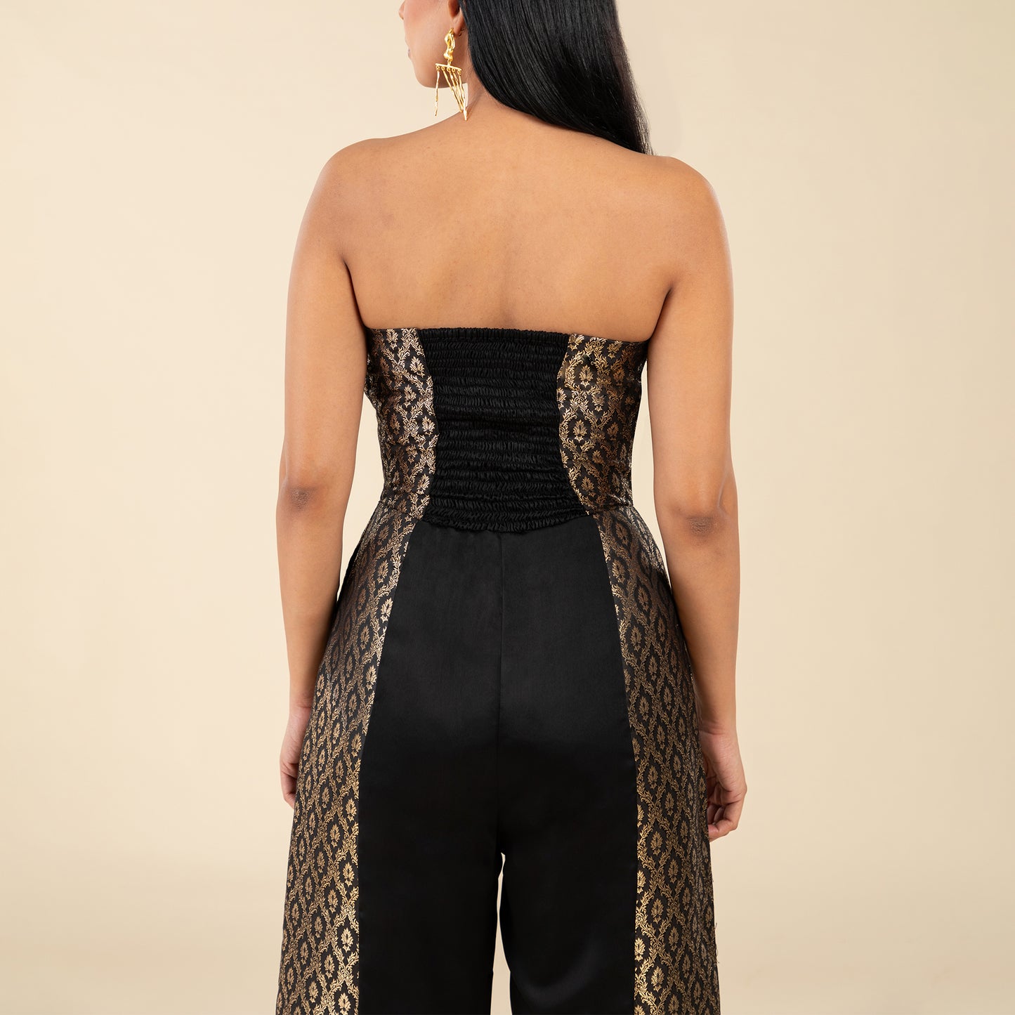 Brocade Wide-Legged Jumpsuit (Petite) - Navy Blue & Gold
